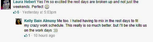 There Summer Transformation Challenge has lots of rest days, and I thought it was odd, but some people are commenting in a very positive way on that change: